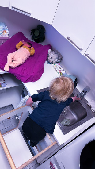 Arjen pyörittäminen kahden lapsen kassa on ollut myös haaste ja menee vielä varmasti aikaa että löytää sen hyvän tahdin sitä varten. Esimerkiksi jonnekin lähteminen kahden lapsen kanssa on aina huomattavasti raskaampaa kuin yhden kanssa. Tai ainakin itse kuormitun siitä kun on tuplat asioita mitä pitää muistaa ottaa mukaan ja molemmilla on kuitenkin vähän eri tavarat, ettei voi vain ottaa tuplana kaikkia samoja asioita mukaan. Kuitenkin olen pyrkinyt joka viikko keksiä jotain aktiviteettia vähintäänkin meidän aamupäiviin. Esimerkiksi viime viikolla olemme maanantaina olleet aamulla käymässä perhekahvilassa (alunperin oli suunniteltu leikkipuistotreffit mutta huonon kelin takia se ei onnistunutkaan), tiistaina Mikael oli hoidossa, keskiviikkona kävimme kirjastossa ja illalla ennen iltapuuhia käytiin puistossa meidän ystävien kanssa, torstaina hoito ja suoraa hoidosta mentiin käymään paapan luona kun Mikael sitä niin kovasti tahtoi aamusta, ja perjantaina neuvola ja päiväunien jälkeen kavereita moikkaamaan.